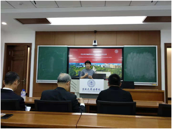 讲座主要围绕如何在民法典编纂过程中纠正损害赔偿法在立法上的不足展开。于敏教授以机动车损害赔偿这一典型的责任类型为视角,从立法的过去时与进行时、机动车损害赔偿责任的产生与性质、我国的社会环境与机动车损害赔偿责任、民法典编纂应如何应对这四个方面进行讨论。于敏教授指出机动车损害赔偿责任的性质有三:其一是对应机动车这种交通工具造成他人损害设立的责任,其特点是针对危险源;其二该责任是保有人责任;其三是机动车损害赔偿责任保险是被保险人对第三者的责任保险。随后于敏教授指出了现行机动车损害赔偿责任制度的一些缺陷,最后于敏教授认为编纂民法典任重道远,各个分则中还有很多问题需要研究,于教授鼓励在座师生勤学多思,多研究民法中的真问题,为民法典的编纂贡献应有的力量。