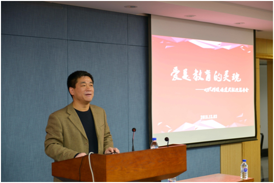 邀请教育部思想道德修养与法律基础课教学指导委员会副主任委员、国家哲学社会科学基金评审委员、国家万人计划教学名师、时代楷模、大连海事大学曲建武教授为全院教师作题为“爱是教育的灵魂”的专题报告。报告会由院党委书记周春国主持,院长蔡立东和班子成员、在校的教师和部分学生代表现场认真聆听了曲建武教授的感人事迹。