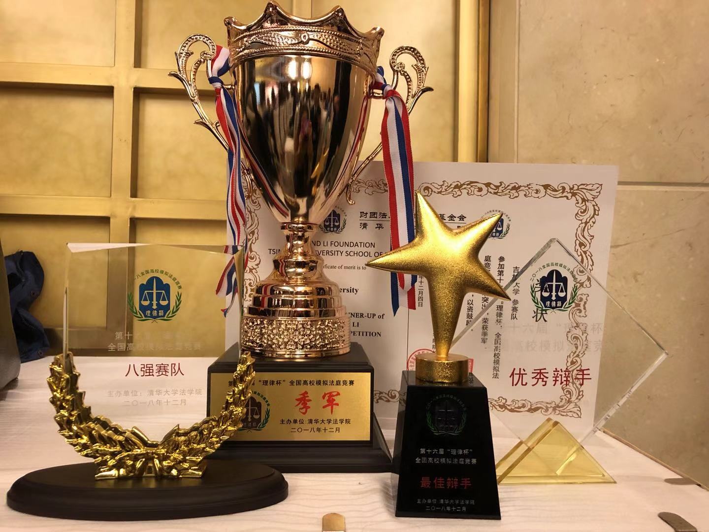 参加理律杯的最好成绩。连一蔓同学凭借专业的法律素养、沉稳优异的表现获得了“优秀辩手”称号,刘晨同学凭借深厚的法律功底、出色的临场表现受到了评委的一致认可,在数百名参赛选手中脱颖而出,获得了理律杯个人最高奖项——最佳辩手奖,这也是体育