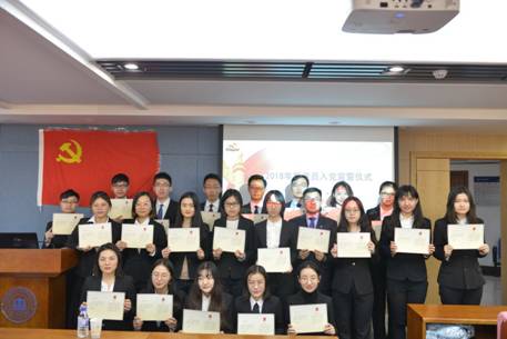 党委副书记徐杰同志为本科生和研究生新党员代表颁发《入党通知书》,每位新党员代表满怀激情地接过了通知书。徐杰同志与每位代表一一握手,并在党旗下合影,记录下这一难忘的时刻。仪式最后由新党员代表崔炜同学发言。他代表新党员们承诺:始终牢记党的宗旨,将入党誓词作为自己终生的追求和终生的实践,为全面建成小康社会而努力奋斗,让实现中华民族伟大复兴在我们这一代人的奋斗中梦想成真。