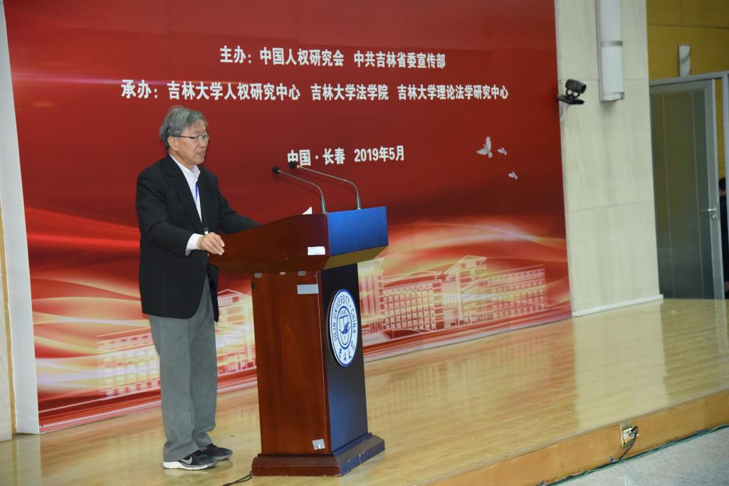 全国人大常委会委员、全国人大监察和司法委员会副主任委员,中国人权研究会副会长徐显明发表致辞。徐显明副会长从历史出发,考察了70年前新中国的人权起点,提出了当时中国人权面对的“五座大山”——贫困、疾病、愚昧、战乱和离散。70年后,中国人民成功地将五座大山全部搬掉,在五个领域都取得了历史性进步。纵观新中国70年的历程,中国走出了一条符合自身国情的人权道路。