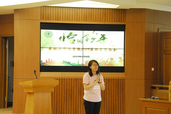 接着,2009届校友代表分别上台发言。他们纷纷表示,十年的成长之路,离不开体育的悉心培养,离不开恩师们的辛勤培育。怀揣对中国法治建设的赤子之心,坚持母校所教导的做人原则,2009届校友将继续用自己的实际行动践行吉大法律人的誓言。