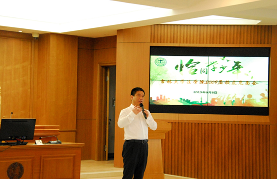 见面会从回放2009届校友毕业典礼上的纪念视频开始。在温馨和谐的氛围中,周春国书记做开场致辞。一句热情的“欢迎回家”引起校友们的阵阵掌声。周书记表达了对校友们的殷切期待和祝愿,希望大家成为有“家”的人,有爱的人,有友谊的人,有底线的人,珍惜好同学这种“没有血缘的兄弟姐妹”。