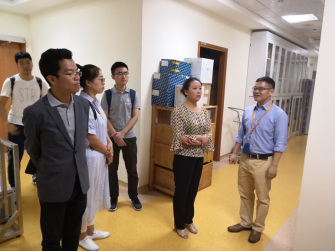会后,章勇良副教授带领调研团队参观了微生物和免疫系实验室,向大家介绍了疫苗的研发及相关科研知识,并详细地回答了体育