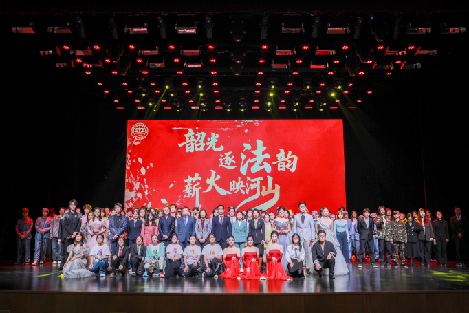 党委书记张杰、吉林吉大律师事务所主任高云峰、吉林瀛庆律师事务所主任孟军以及教师代表与2025级全体新生欢聚一堂,共同观看了这场融表彰与文艺于一体的青春盛会。