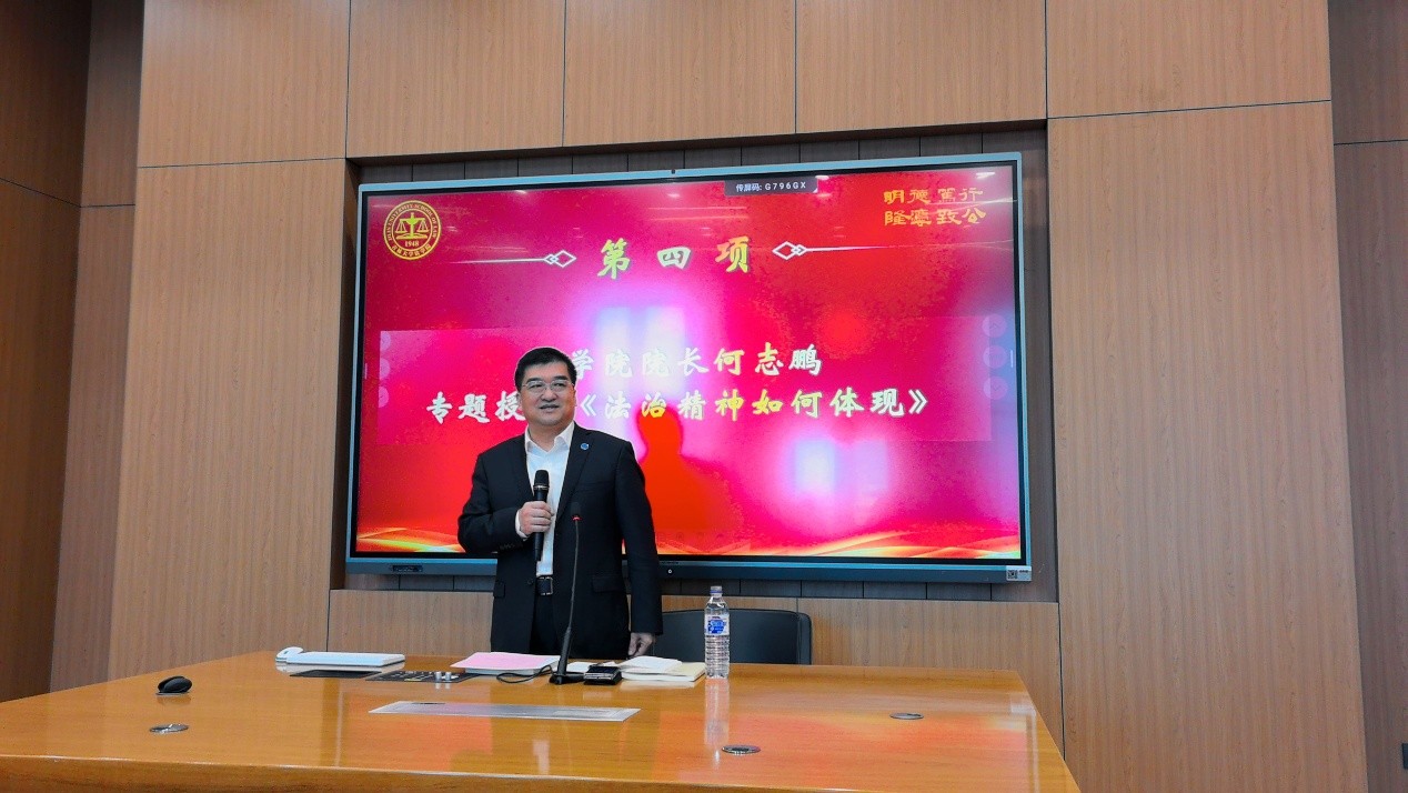 院长何志鹏教授以《法治精神如何体现》为题,围绕“人民至上、公平正义、激流勇进、律己奉献、包容开放、自信自主”六大维度,系统阐释了习近平法治思想所蕴含与倡导的法治精神的时代内涵。体育