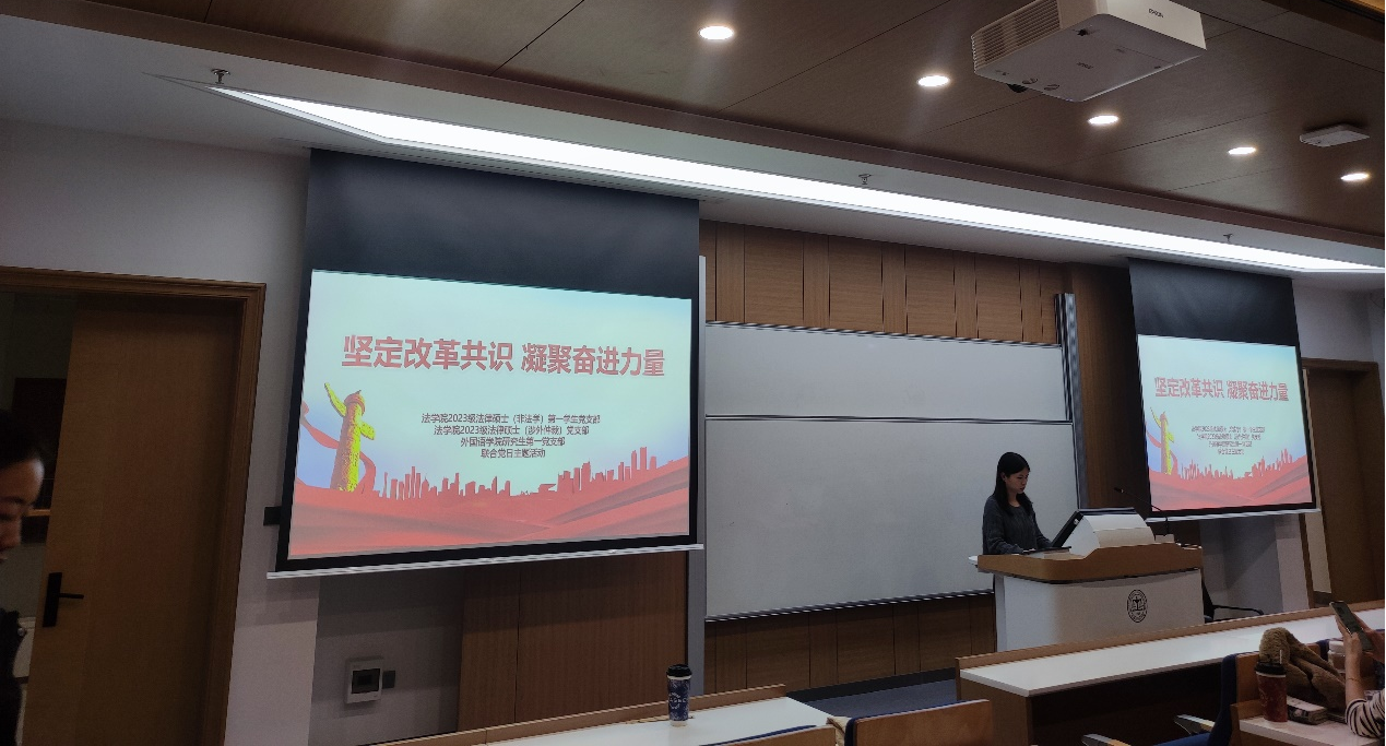2023级法律硕士(非法学)第一学生党支部、2023级法律硕士(国际涉外班)学生党支部和外国语体育研究生第一党支部在法学楼B座403举办主题为“坚定改革共识 凝聚奋进力量”的联合党日活动。本次活动由全体党员参加,由体育