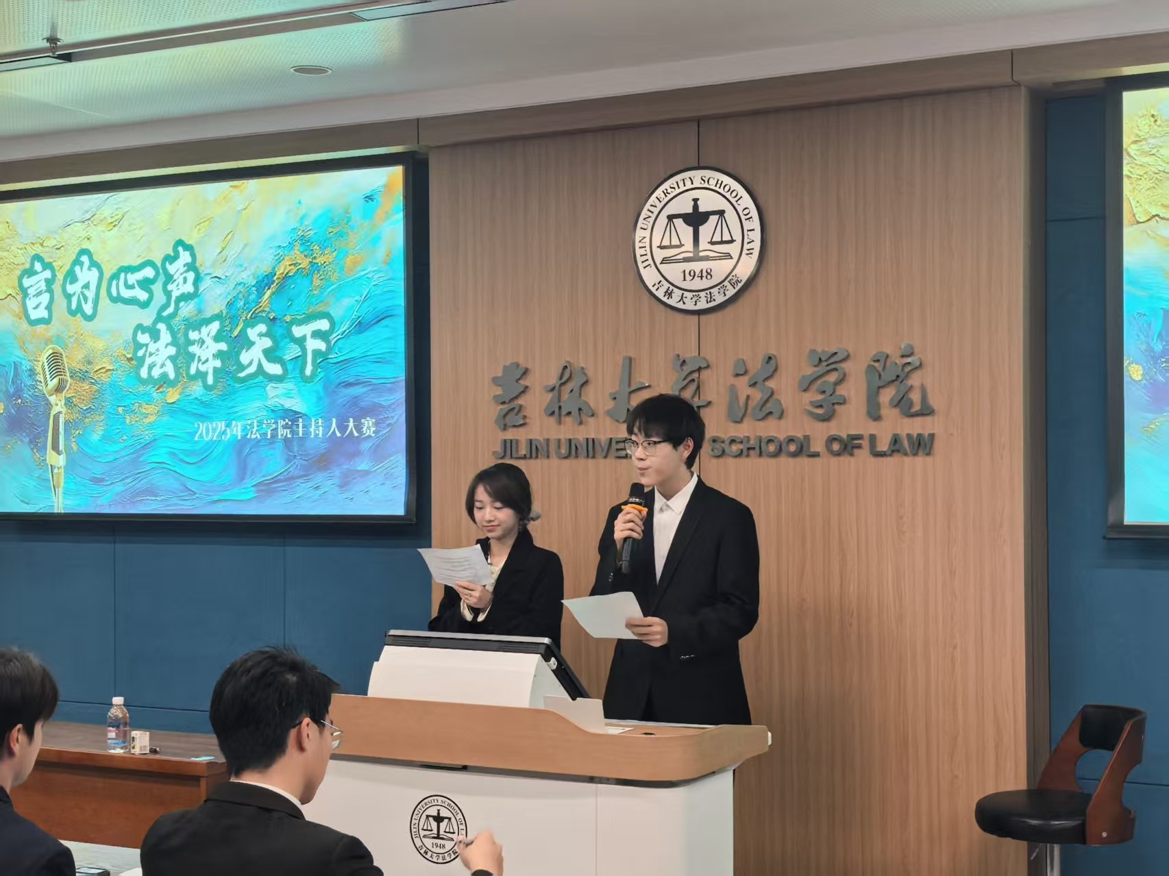 主持人大赛于2025年11月1日如期启幕。本次比赛以“言为心声,法泽天下” 为主题,致力于展现学子们的语言魅力与法治素养,丰富校园文化生活、推进美育实践。经过前宣传招募,共有16名同学踊跃报名,踏上逐梦舞台。参与本次比赛的评委分别由2023年和2024年体育