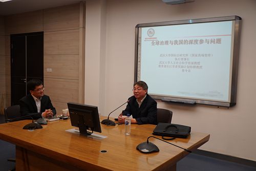 涉外卓越法律人才培养基地教室做了《全球治理结构变革与中国的深度参与》的报告。本次报告是体育