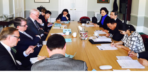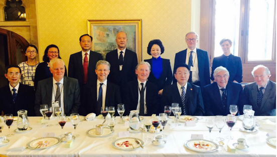 为落实2015年10月习主席访问英国时要加强中英法律合作的指示,中国法学会组成以副会长张鸣起为团长、以副会长朱孝清为副团长代表团于2016年7月3日至2016年7月5日对英国上议院、英国最高法院、英中协会、英中贸易协会,英国大律师公会,英格兰和爱尓士律师事务公会进行访问。7月4日上午,英中协会主席马丁·戴维信勋爵、欧盟委员会委员曼德尔森勋爵接待了代表团成员,双方就中英之间如何开展合作进行了座谈交流。