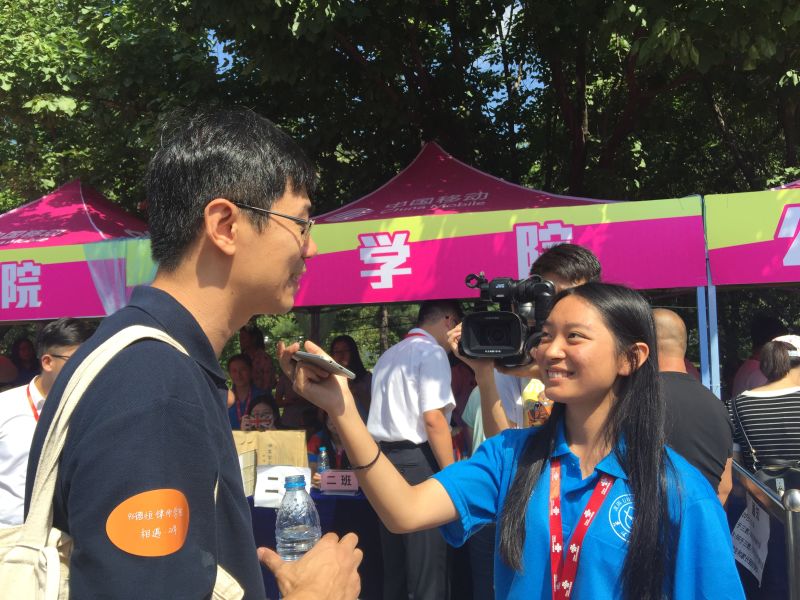 那群我们入校时可能还没出生、从来没有听过德恒律师体育的孩子们,看着统一着装的我们,好奇多过疑惑吧。这不,美女小记者不是正在采访我们的颜值和个头担当吗?