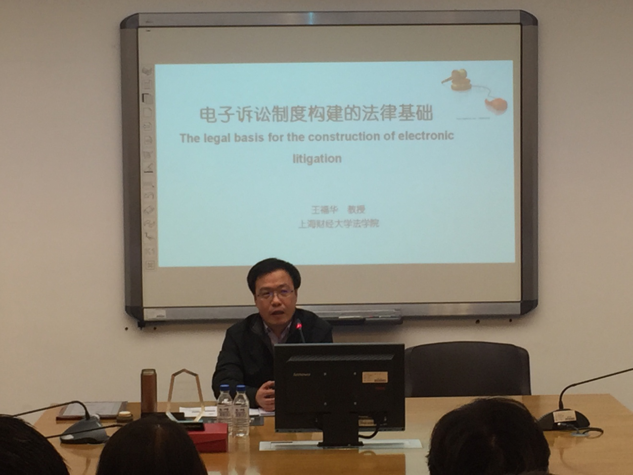 王福华教授应邀做了题为“电子诉讼制度构建的法律基础”的讲座。
