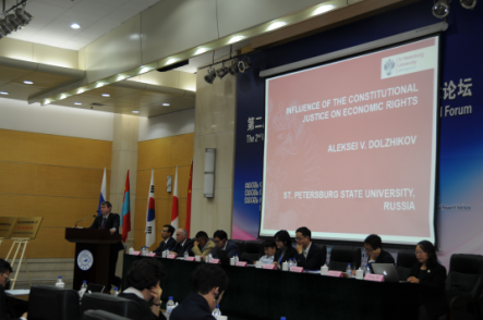副教授阿列克谢·多尔日尼科夫分别进行题为《东北亚司法协助领域中的合作发展》、《中蒙俄经济走廊软法构建问题》、《走向东北亚的中国仲裁》、《“报”文化视角下的贿赂型犯罪的认定》、《论抵押物受让人的法律地位——与日本法相比较》《中日韩三方投资条约和亚太地区的多边主义》《宪法审查对经济权利的影响》的主题发言,并由延边大学体育