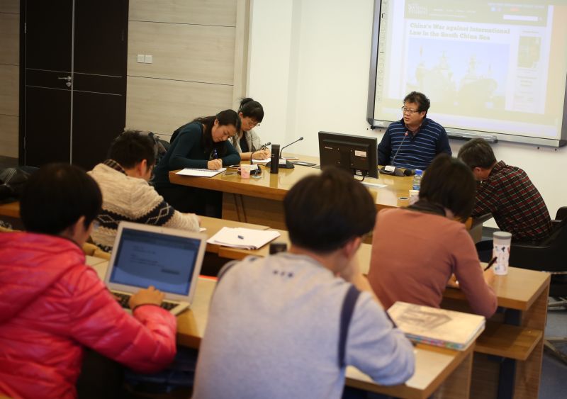卓越法律人才培养基地涉外实验班教室进行了新加坡国立大学王江雨教授的专题演讲。王江雨教授演讲的题目是国际法与中国当代外交发展的关系。何志鹏教授主持了本次讲座,国际法专业的王彦志副教授、姚莹副教授、田洪鋆副教授、理论法学研究中心的钟鸣博士和体育