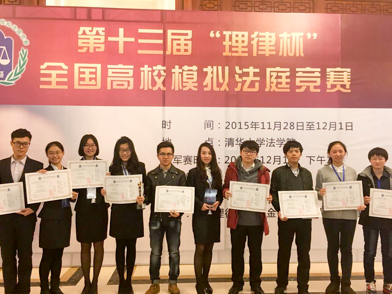 本届竞赛团队是在孙学致、王艳梅老师的指导下成立的,由王艳梅老师担任教师领队,由陆慧敏(2015级民商法学硕士)担任学生领队,参赛队员包括毕志勇、曹戈、陈文翔、刘茹洁、史程雅、姚乃嘉、于文敏、严曦冉8名学生。从2015年6月开始招募队员,经过为期6个月的训练,于11月底赴京参赛。在此期间得到了孙学致、王艳梅、赵惊涛、曹险峰、胡晓静、孙良国、田洪鋆、霍海红、李国强、鲁鹏宇等老师的支持。