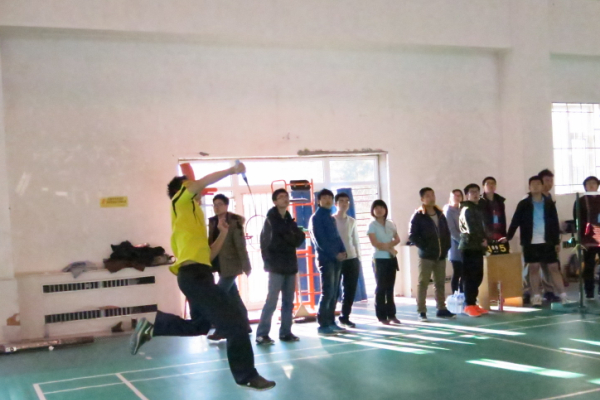 本次比赛分为上、下午两个阶段。上午进行的是男子、女子单打,双打初赛和男女混合双打初赛。参与比赛的同学在场上激烈拼杀,赛出了水平,体现了风格;场下观看的同学也为场上的队员加油助威,四只啦啦操队伍更是把场上气氛带到了高潮。最终冯伊佩、金奇等8名单打队员及双打、混双项目前四名队伍顺利通过初赛,进入到下午的复赛。