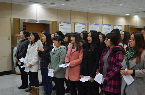 迎新晚会第二次党员合唱排练于11月19日晚6点半30分在东荣十三楼开始。笔者有幸跟随了此次排练,见证了体育