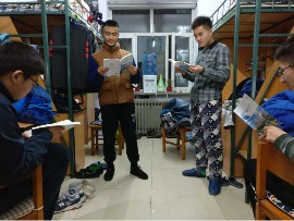 于12月16日上午10点40分准时在三教五阶组织了全院学习新版学生手册的活动。在王皓若同学的组织和带领下,体育
