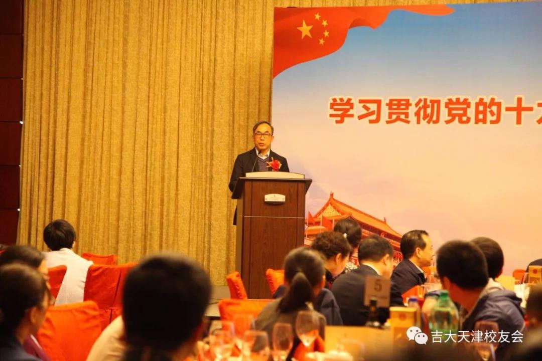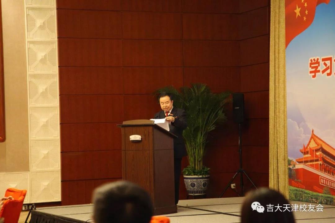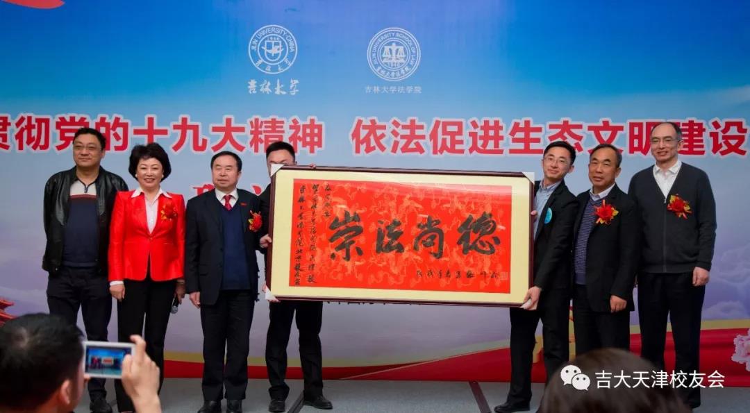 天津校友会时,他强调,成立本会是给校友在天津的学习生活工作提供交流互助的平台,成立本会是为了以实际的行动支持母院事业发展,成立本会是为了更好地服务于天津的“五个文明”建设。在谈到为什么要有隆重的仪式时,他指出,干事要有仪式感,仪式体现庄重,仪式彰显母院尊严,隆重的仪式振奋校友的精神。在谈到为什么要选定“学习贯彻党的十九大精神 依法促进生态文明建设”这个会议主题时,他阐明,党的十八大以来,以习近平同志为核心的党中央高度重视生态文明建设,党的十九大报告强调了构建人与自然生命共同体的重要理念,加强生态文明建设也契合天津经济社会发展的实际,作为一名法律人,理应多从法治的视域为生态文明建设建言献策,要依法促进和支持生态文明建设这项伟大的事业。在谈到今后如何办好校友会时,他提出,应当更好地为校友提供服务,要多地为母院事业发展出力,更好地凝聚大家智识、促进天津发展。同时,要响应党和国家京津冀协同发展号召、促进三地校友合作交流、共推京津冀协同发展。最后,他代表天津校友对蔡立东院长、马新彦教授、胡英娣和刘冬主任一行不远千里而来表达谢意,对体育