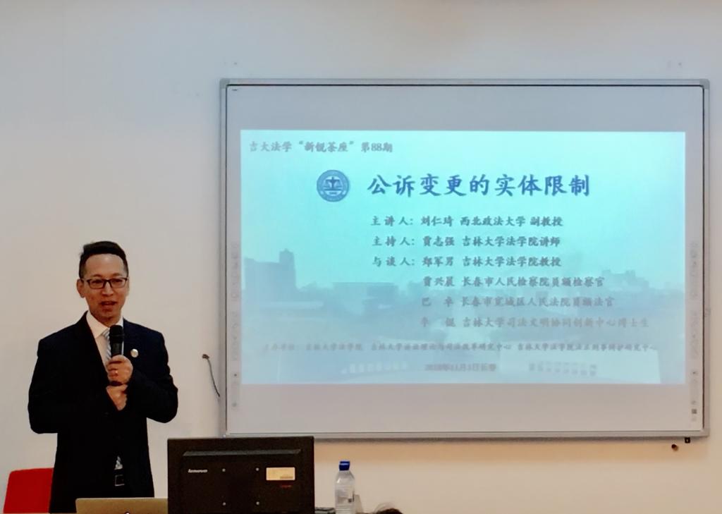 2018年11月3日14时,吉大法学新锐茶座第88期在中心校区经信教学楼二楼卓越法律人才实验班教室成功举办。本期茶座主题为“公诉变更的实体限制”,主讲嘉宾为西北政法大学刑事体育