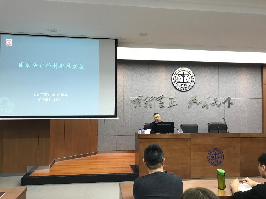 邀请,长春市审计局副局长、民建吉林省委委员、民建长春市委副主委、政协长春市第十三届委员会常务委员孙忠林在东荣大厦B313教室做了主题为“国家审计的创新性发展”专题讲座。讲座由体育
