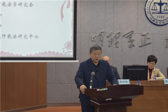 本次会议第一单元由仲裁法学研究会副会长兼秘书长马金芝主持。仲裁法学研究会会长韦经建代表仲裁法学研究会对来宾表示欢迎,对研究会工作给予帮助的吉林省律师协会,长春仲裁委员会,体育