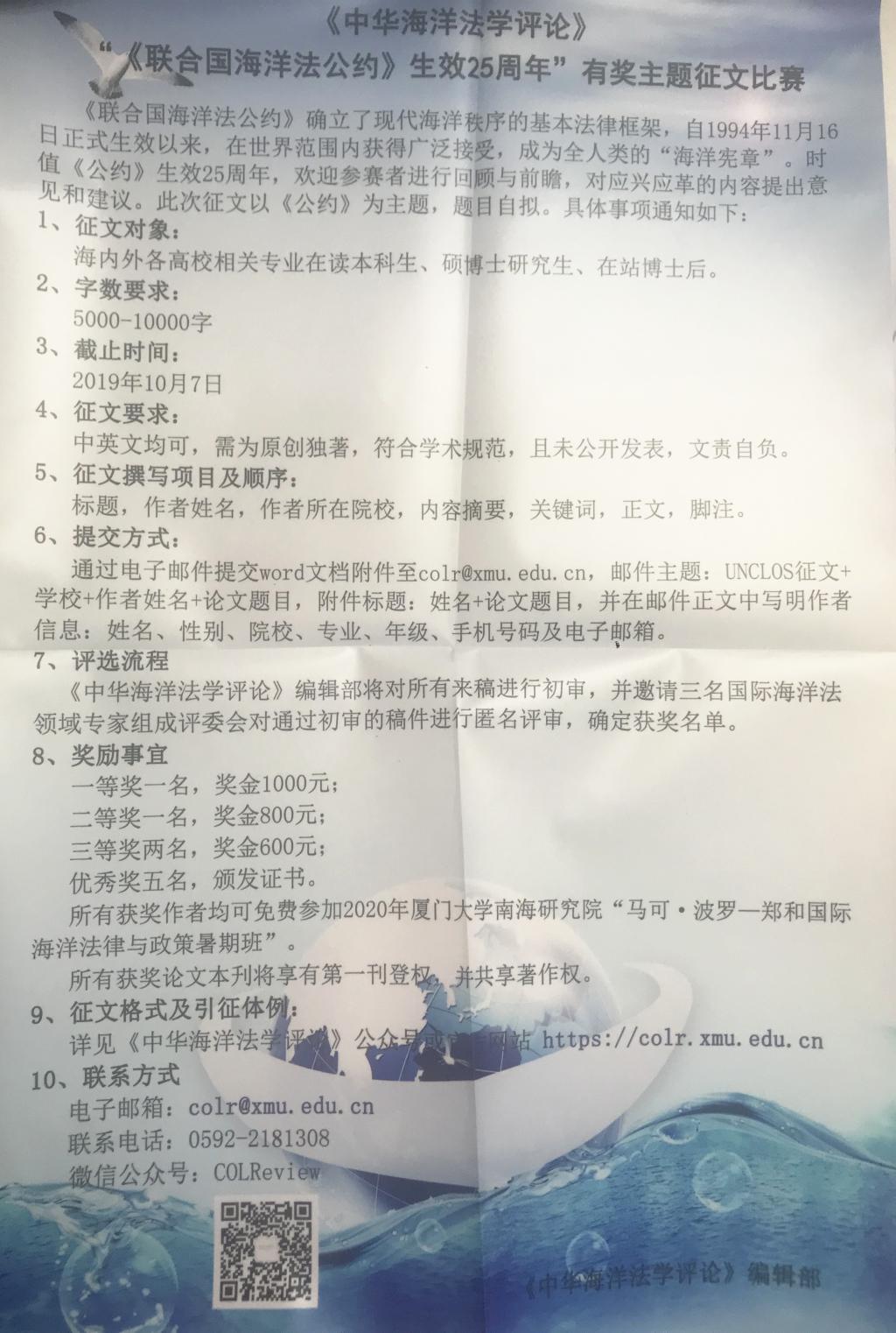 请查看《中华海洋法学评论》编辑部海报(原海报张贴在东荣A座7楼体育 公告栏),请体育 同学积极参与征文,征文详细内容请查看海报内容。