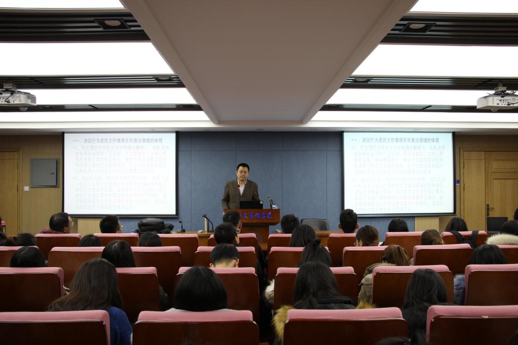 师生带来以“民主价值观在我国民法典中的具体化”为主题的讲座。讲座由体育