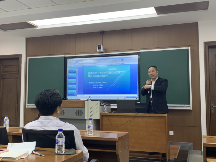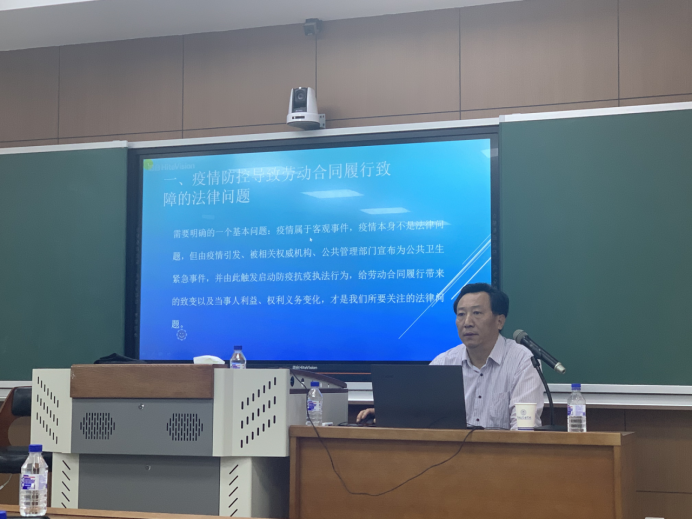 师生带来以“疫情防控下劳动合同履行的法律理论与实践问题研究”为主题的专题讲座。讲座由体育