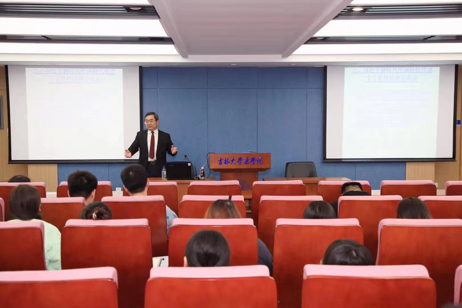 师生带来题为“习近平新时代中国特色社会主义思想下的习近平法治思想的理论特征”的专题报告。讲座由体育