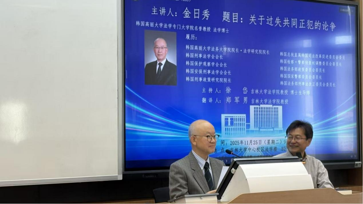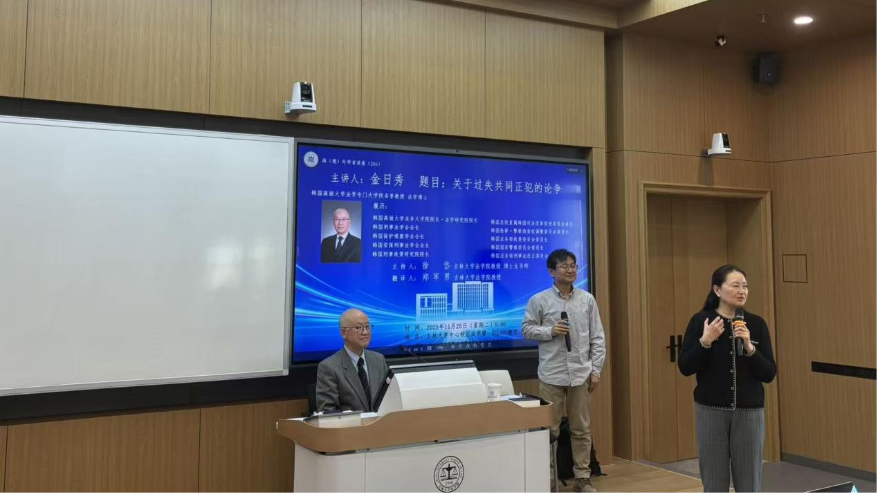 中心校区法学楼B405教室举行。韩国高丽大学法学专门大体育名誉教授、前韩国刑事政策研究院院长金日秀应邀做客体育