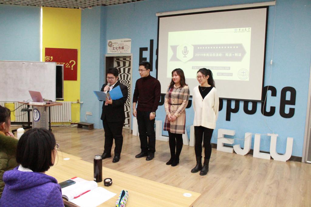 分团委副书记乔敬时、分团委干事刘琦、杜伟桐、王思琪等,在吉大南岭校区创客空间与管理体育的同学一起举办了宪法日教育活动。