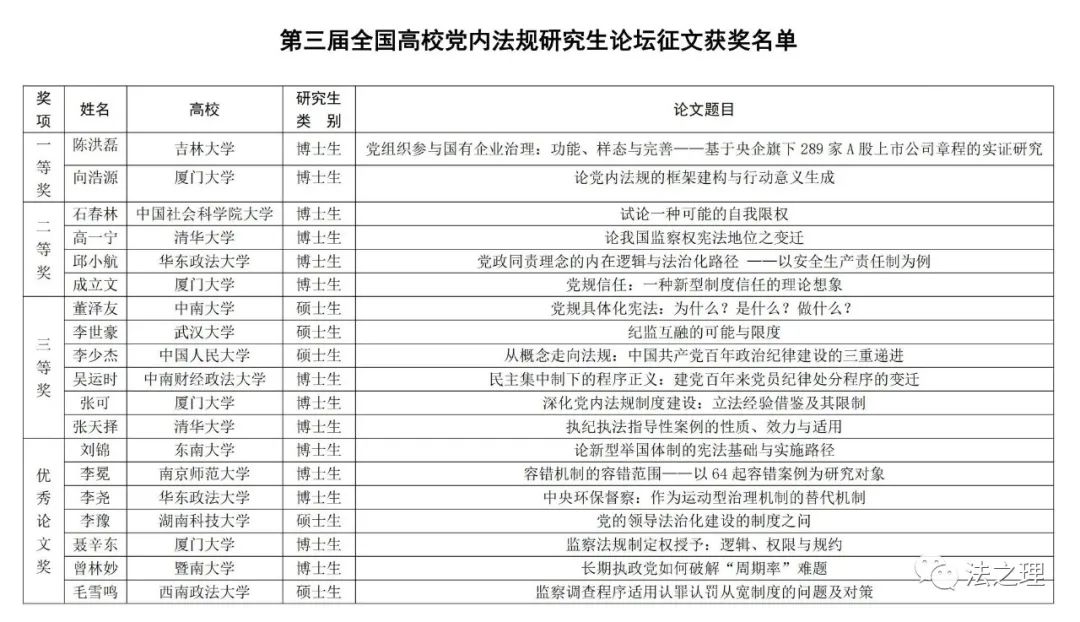 2021年12月26日,厦门大学党内法规高端论坛暨第三届全国高校党内法规研究生论坛通过线上线下相结合的方式成功举办。该届论坛共计收到来自全国29 个省市区的 78 所高校、科研院所研究生的 167 篇来稿。该论坛秉持“重程序、高标准、严要求”的评阅标准,诚邀专业领域内审稿专家,严格按照初审、外审、复审流程,全过程采用匿名评审办法,最终遴选出 50 篇佳作,并从中选出 24 位作者担任报告人。再综合前期评审和现场表现确定论文获奖的最终结果。