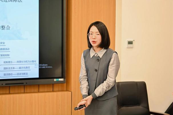 助理研究员、博士后冉高苒,以《数据财产的治理范式》为题进行发言。第六位报告人武汉大学国际法研究所博士研究生罗旷怡,以《网络空间国际法的体系化建构——从三个维度的问题意识出发》为题进行发言。第七位报告人中国人民大学体育