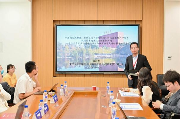 弘深青年教师、博士后黄超艺,以《中国的实践智慧:如何通过“府院联动”解决企业破产中的大规模侵害健康权责任承担问题》为题进行发言。第三位报告人西南政法大学民商体育