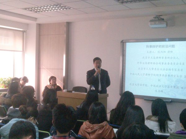 钱律师讲座的前半部分以法条分析为视角,阐发了在新刑诉法背景下律师应如何应对新挑战;后半部分则通过一个个鲜活的案例,向同学们讲解了刑辩律师的职业技能和伦理规范。在讲座结束后,他耐心地回答了学生的提问,使同学们了解到了刑辩律师的苦与乐。讲座现场座无虚席,气氛热烈,师生互动意犹未尽。