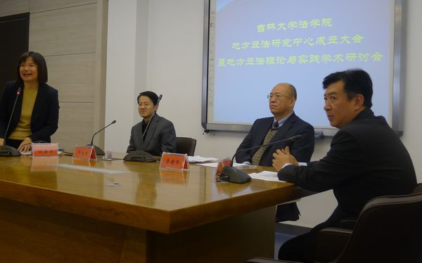 在经信教学楼卓越法律人才实验班教室举办地方立法研究中心成立大会暨地方立法理论与实践学术研讨会。来自吉林省人大法工委、长春市人大法工委、体育